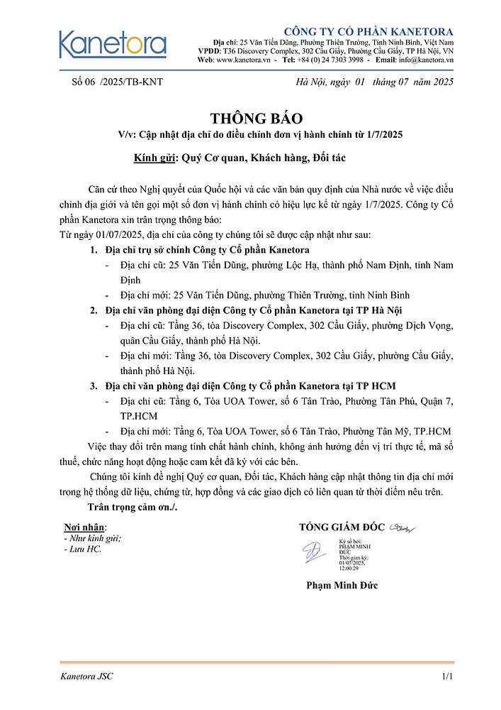 To: Valued Government Agencies, Partners, and Customers Pursuant to the Resolution of the National Assembly and relevant legal documents regarding the adjustment of
